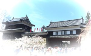 - 東虎口櫓門を背景に撮る全景ショット